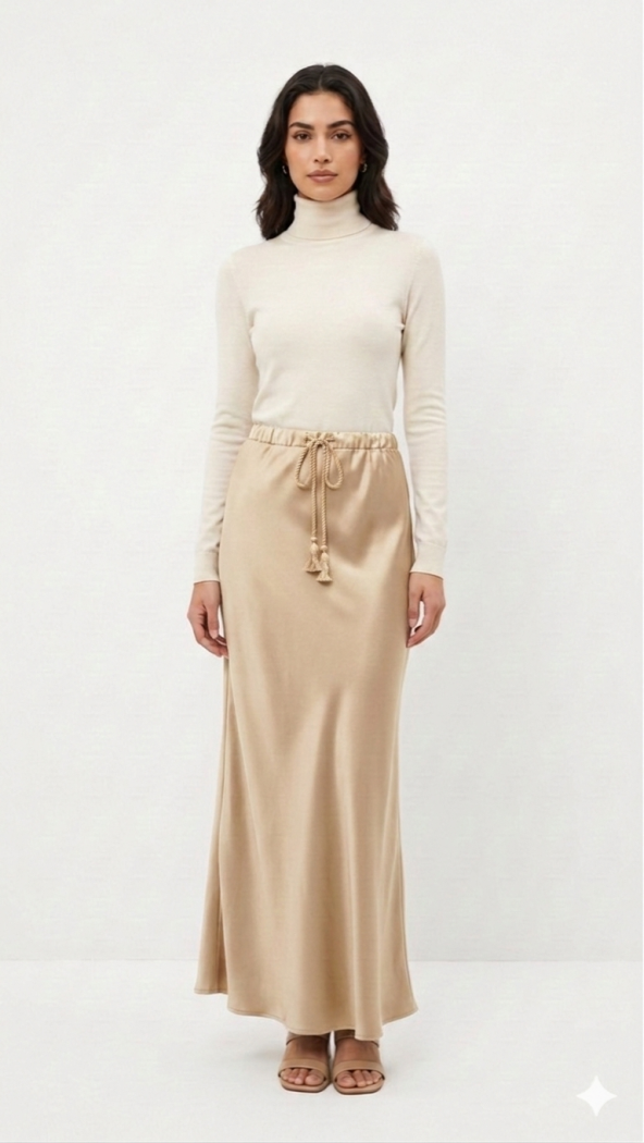 חצאית סאטן בד דיור עם שרוך הדגם הכי נמכר אצלנו כל העונה